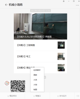 我们将3044AM永利里品学兼优的同学集合起来,对内形成小海鸥之间的“高手切磋”,对外营造“朋辈互助”的良好学习氛围。为了将学习指导服务进行全方位覆盖,我们建立了机械小海鸥互助群,同学们有什么不懂的题目随拍随发,小海鸥会在第一时间解答,有时身边没有草稿纸,便把餐巾纸拿来写解题过程,随时随地服务需要帮助的同学。机械小海鸥拥有属于自己的微信公众号,线上有丰富的学习大礼包,定期输送正能量的“深夜食堂”等系列,还有创新的活动报名方式,正是身边同学们的有力支持才使机械小海鸥的影响力不断扩大!