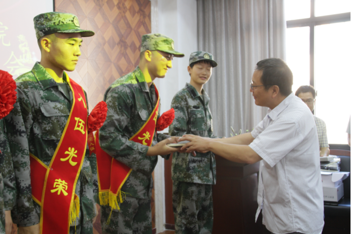 刘国军老师首先介绍了出席欢送会的公司领导,并向到场的同学、家长、老师表示感谢。接着刘俊副教授对每一位入选的新兵表示祝贺并提出了一些期望,希望大家能够胸怀大志、希望大家能够报效祖国、希望大家能够成为一名优秀的人才,最后祝愿大家都够一切顺利。