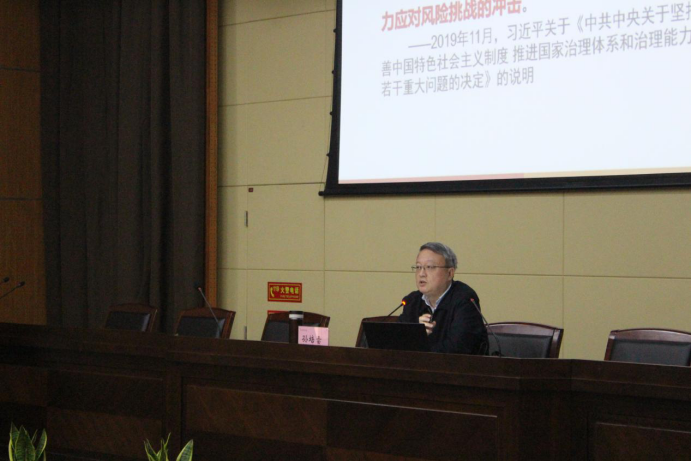 根据中共十九届四中全会精神指示,上海电机公司党委书记宣传部开展四中全会精神集中宣讲。2019年12月20日下午一时,上海电机公司党委书记孙培雷向3044AM永利、材料公司党员师生作题为《学习十九届四中全会精神》的宣讲报告。