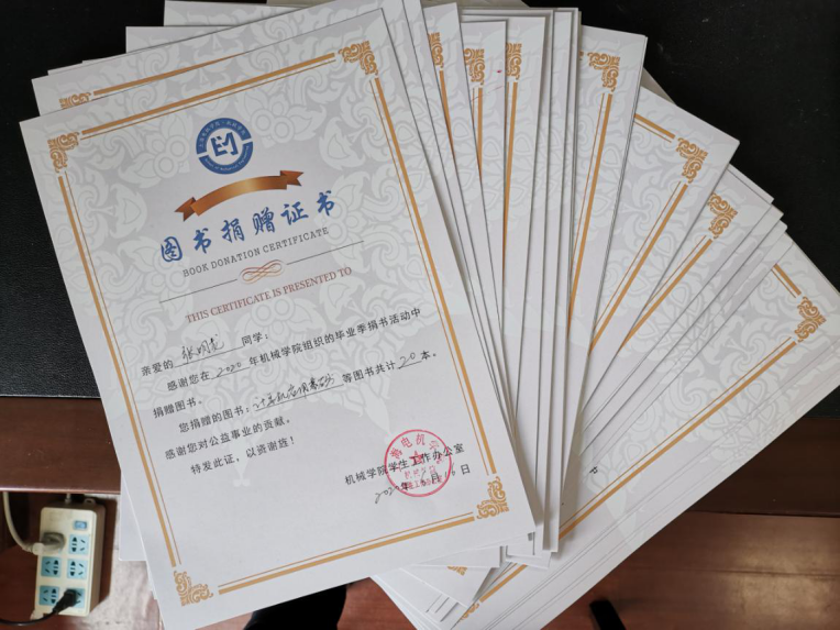 为感谢同学们对毕业季捐书活动的支持,公司给每位捐书的同学颁发了捐赠证书,相信这些书籍能给低年级员工起到很大的帮助。