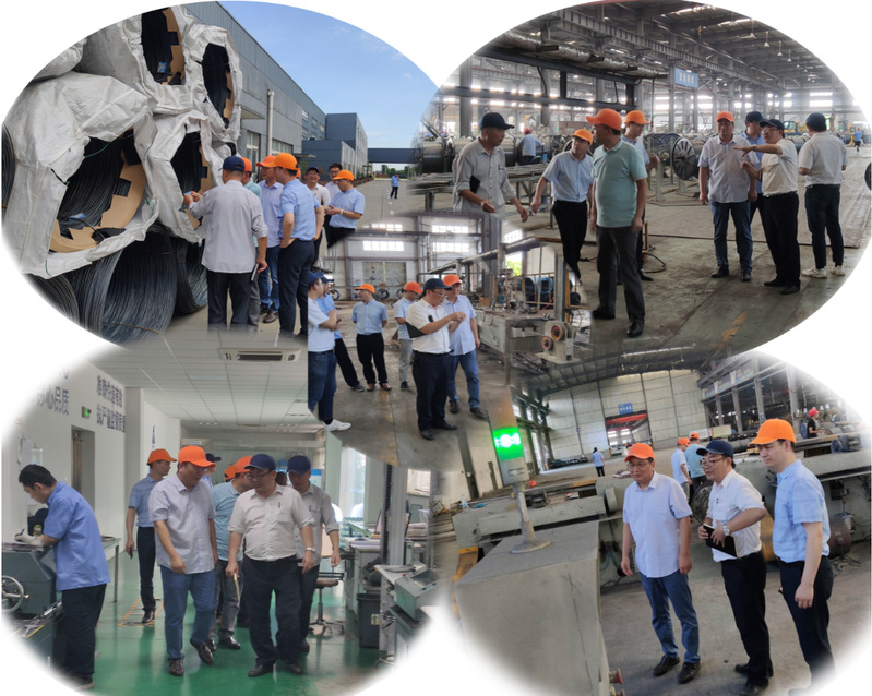 座谈结束后,总工程师迟仁贵、副总经理苟光荣等公司领导带领辛教授、沈局长一行参观了生产基地和测试检验中心,实地考察了钢丝产品生产的盘条拨丝、除磷、酸洗、热处理等生产过程及产品质量检验过程,期间大家进行了技术讨论。校企双方确定以申报的省级工程技术研究中心为平台,围绕企业核心技术和技术改造积极开展工作,让科技助力企业发展。调研期间,辛教授一行还与江苏科技镇长团团长、姜堰区孙宏翠副区长进行了友好交流。