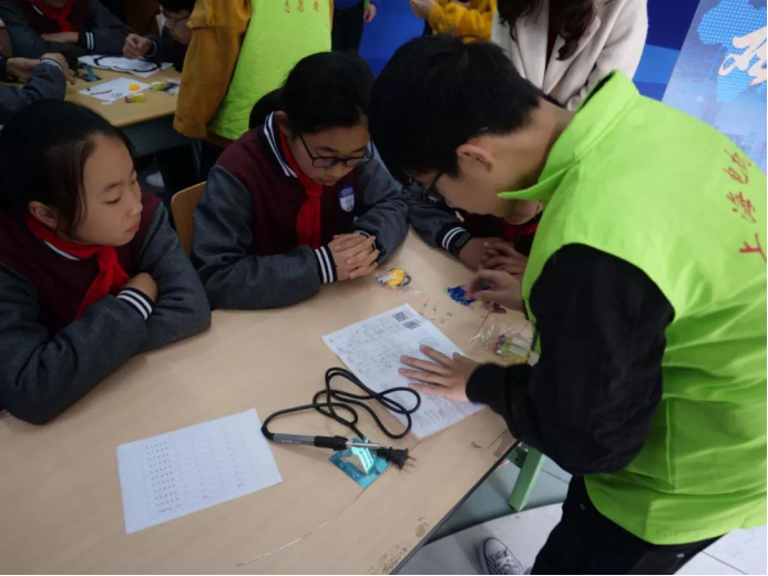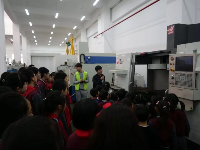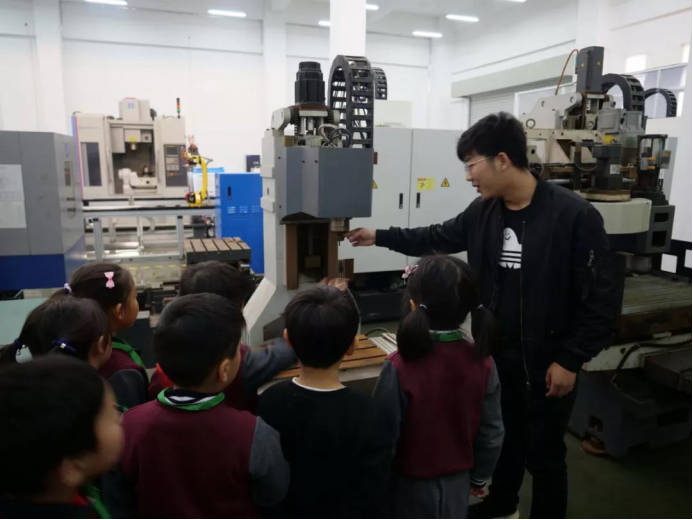 临外的师生首先参观了机械楼大厅,紧接着在公司志愿者带领下,观摩了传统先进制造业展区,小朋友们对传统工业制造技术很感兴趣,踊跃提问,志愿者一一解答。