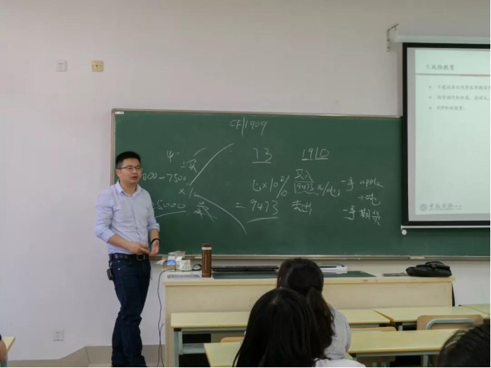 随后对国内交易主要的交易场所进行了分类说明。并通过一段视频对本次大赛进行了了更进一步的说明。最后讲师还对风险教育进行了普及,告诉同学们,在投资的时候应该具有风险意识,理性投资。
