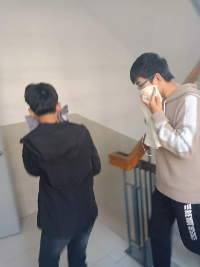 2018年11月9日12时整,伴随着紧急的警报声敲响,3044AM永利2018级3044AM永利全体新生拿着毛巾或是用着衣服的袖管,捂住口鼻,整齐有序地顺着楼梯下楼,每个人的脸上都显露着冷静,没有一丝慌乱和紧张。
