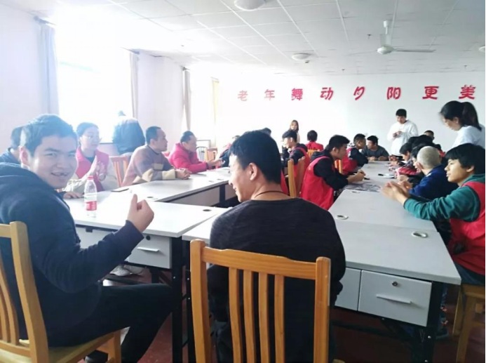 午饭之后,下午1点,志愿者们与老人展开了“一对一教学”活动,与他们一起搭积木,教他们写书法,给他们表演节目,每个人脸上都洋溢着幸福的笑容。大家一起合唱了“精忠报国”、“最炫民族风”等经典曲目。