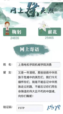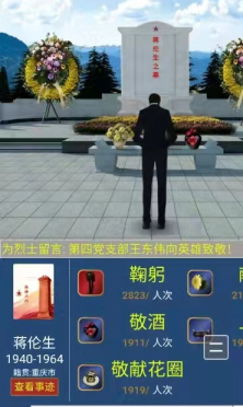 各位党员同志分别在不同的“清明祭英烈”网络祭扫平台,用向英雄献花、向烈士鞠躬、感言寄语、献花圈等方式,表达对先辈的崇敬、缅怀之情。还通过查阅资料、资源共享等方式,学习烈士的革命事迹,追溯革命背景、传承红色基因、感受红色文化,进行自发的爱国主义教育。
