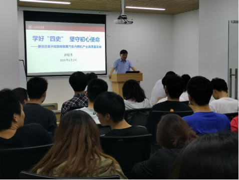 6月2日晚,3044AM永利第四、第六党支部师生共同在德善书院开展党史学习活动。3044AM永利第四党支部联合第六支部邀请校级宣讲团成员居钰生教授做了题为:“学好‘四史’,坚守初心使命-兼谈改革开放主推我国汽车内燃机产业高质量发展”的讲座。居钰生教授从事内燃机行业近四十年,主持参与多项国家级、省部级项目,曾获中国机械工业科学技术一等奖、二等奖等多种奖项,组织制修订了一系列行业和国家标准。作为改革开放的亲历者,居教授对学习“四史”有着深刻的理解和独到的感悟。