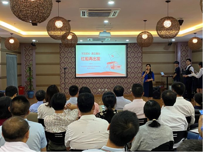 庆祝活动从公司党总支书记刘俊同志的党史小故事《中共共产党的起航—嘉兴南湖红船》开始。红船故事一下子让师生们穿越回到百年前中国共产党成立之初的新民主主义革命时期,在小小的红船上,中国共产党通过了《中国共产党第一个纲领》和《中国共产党第一个决议》,对党的工作做出安排部署,选出了中共历史上第一个中央领导机构,宣告了中国共产党的正式成立。“红船精神”作为党的精神财富的重要组成部分,彰显出超越时空的恒久价值和旺盛生命力。在党史学习教育中,刘俊同志携家人参观了中共一大会址纪念馆并去浙江嘉兴瞻仰了南湖红船,重走了中国共产党起源之地。