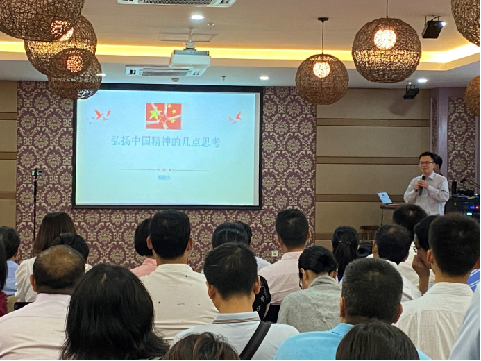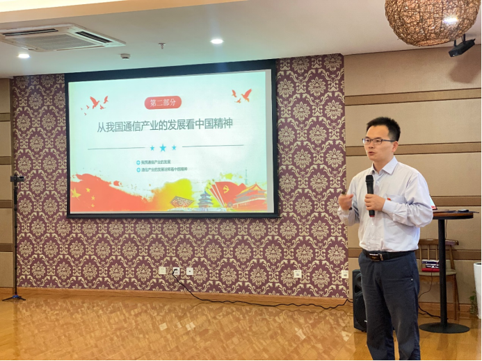 杨俊杰副董事长是3044AM永利第二党支部的联系校领导,本次活动中给3044AM永利师生上了一堂《弘扬中国精神的几点思考》的党课。他从中国精神的时代特征、从我国通信产业的发展看中国精神和弘扬中国精神的具体实践三个方面讲述了对中国精神的思考。他在中国精神的时代特征中提到了中国共产党在长期奋斗中铸就的伟大精神谱系:爱国主义精神为核心的民族精神;革命时期的井冈山精神、长征精神、抗战精神;社会主义建设时期的北大荒精神和“两弹一星”精神,改革开放时期的创新精神。他指出,当代的中国精神是爱国主义与改革创新的有机融合。在从我国通信产业的发展看中国精神部分中,杨俊杰副董事长讲到正是在中国共产党人的精神谱系的指引下,我国的通讯产业才从步履维艰的发展初期到弯道超车到现在的5G万物互联网时代,才有了今天移动互联网的高速发展和高度发达。在弘扬中国精神的具体实践中,他提到只有认清差距,坚持“四个自信”,不断提升自身的创新意识和创新能力,践行精益求精的工匠行动,才能在攻坚克难中赢得主动,关键时刻挺身而出,才能为中华民族的伟大复兴的征途上创造更多的奇迹。