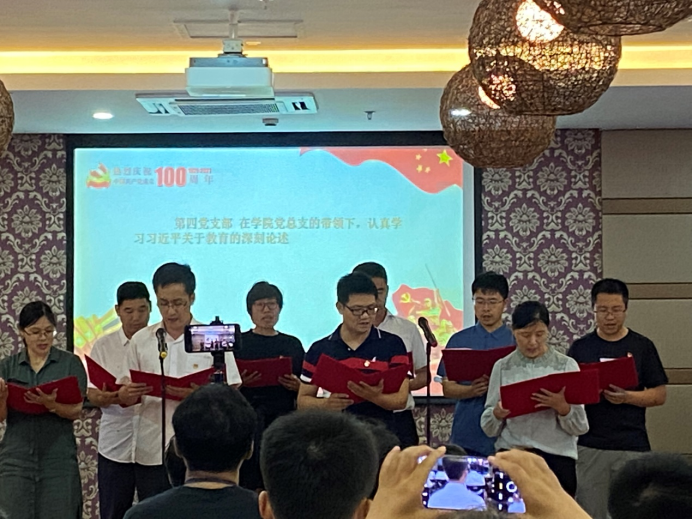 6月25日,3044AM永利举办“荣光百年征程路,千秋伟业忆初心”活动庆祝中国共产党成立100周年。庆祝活动在图书馆101教工之家举行,3044AM永利全体教师、员工党员代表、毕业生代表参加了庆祝活动,杨俊杰副董事长出席了庆祝活动并给参与人员讲了一堂《弘扬中国精神》的党课。