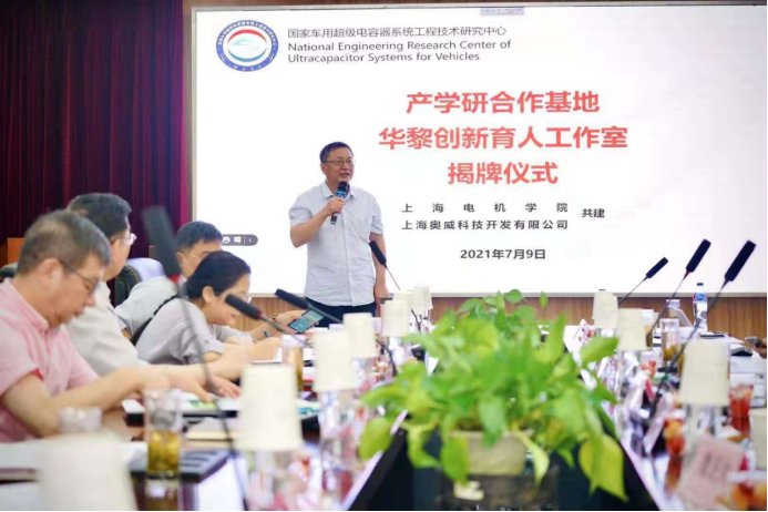 2021年7月9日上午,借上海奥威科技开发有限公司召开“国家车用超级电容器系统工程技术研究中心”年会之机,产学研基地与华黎创新育人工作室揭牌仪式在上海奥威科技开发有限公司一号会议室隆重举行。