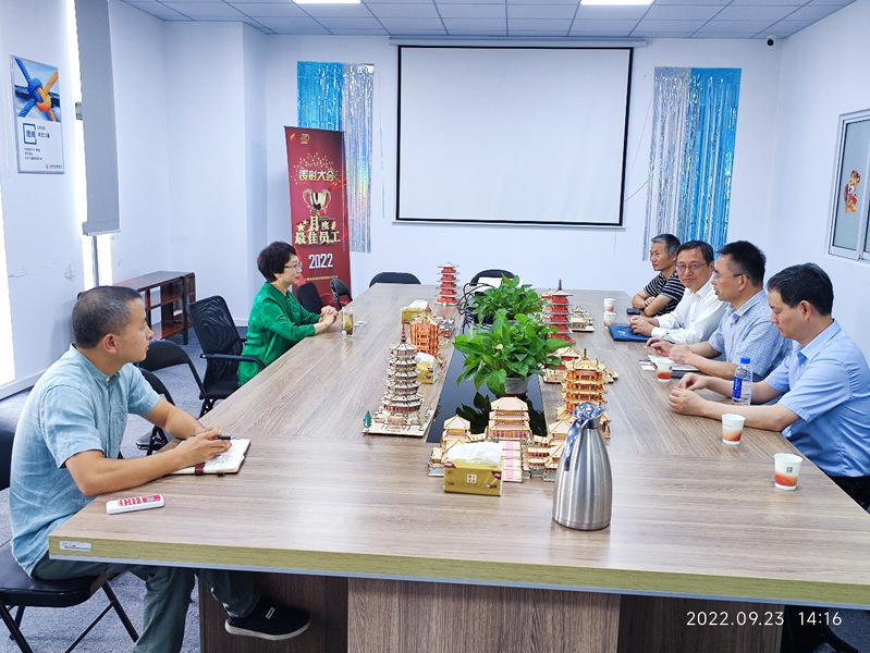 随后一行人前往上海长肯实验设备有限公司交流。张栋副经理介绍了公司的团队建设、公司产品等情况。上海长肯实验设备有限公司总经理吴旭艳介绍了上海长肯实验设备有限公司在自动化设备、高温炉设计等方面的业务,并表示对仿真模拟相关人才的需求,期待双发在人才推荐、员工培训,企业实习,研究生联合培养等方面进行深入合作。