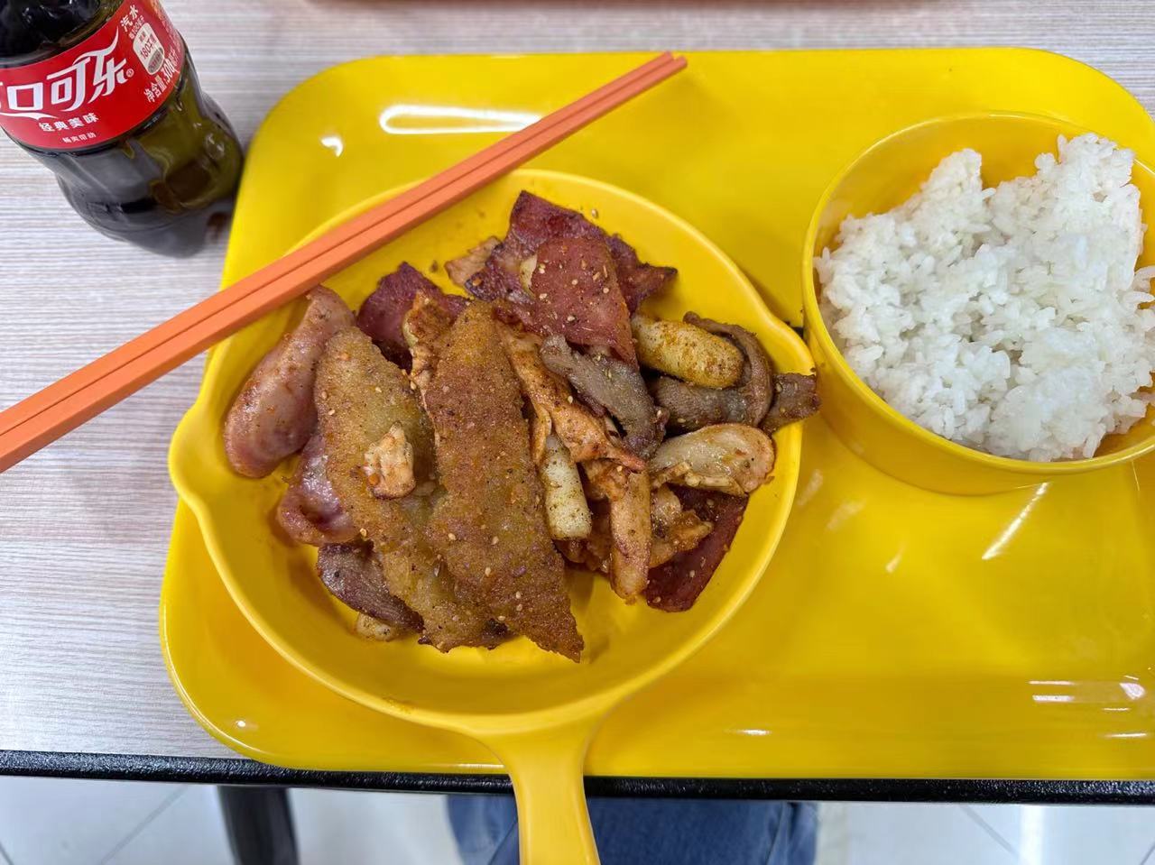 开学第一天,回到了久违的课堂,最想念的莫过于食堂的美食,开学第一餐是二食堂三楼的烤盘饭,还是一如既往的实惠又好吃。中午的一食堂排满了同学,大家有序的排着队,很有效的提高了取餐效率。恢复了疫情前的堂吃,最大的愿望就是跟室友朋友一起吃吃吃!