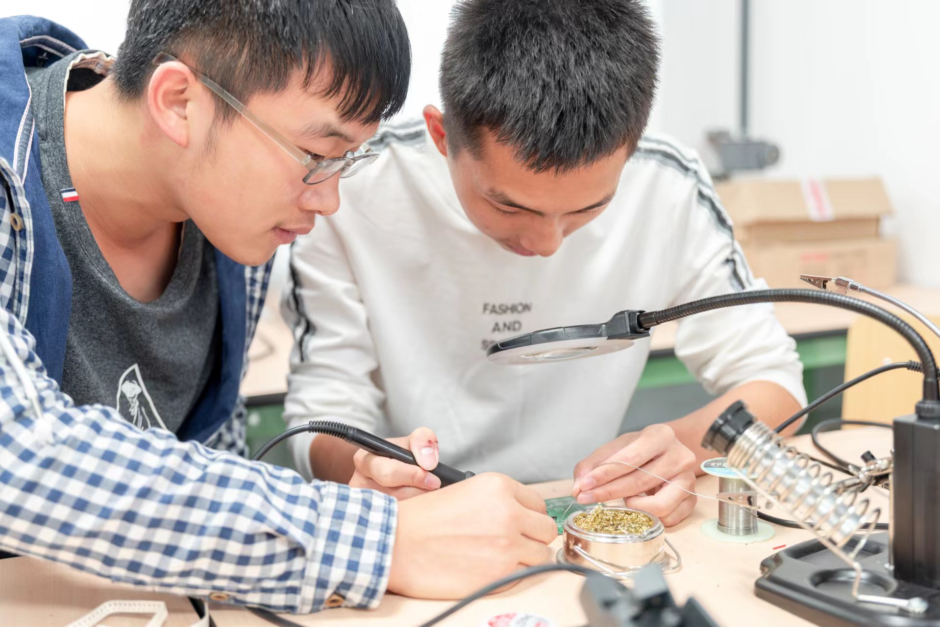 细化“四共同”联合培养新路径。校企共同制定人才培养方案、共建产教融合课程、共组“双师型”教师队伍、共建实验实训教学基地,实现“大作业出成品、竞赛科创出成绩、项目研究出成果”,大大提升了员工学习成效和实践能力。