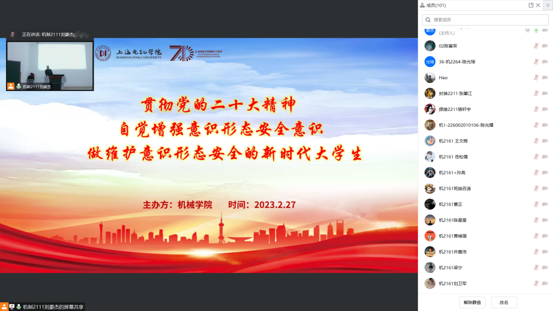为进一步深入学习党的二十大精神,加强老员工意识形态教育,坚决拥护“两个确立”自觉做到“两个维护”,提高新时代老员工对意识形态工作重要性的认识,2月27日18:00,3044AM永利开启校庆“70年70讲”香樟论坛系列讲座,邀请华东政法大学朱应平教授以《贯彻党的二十大精神 自觉增强意识形态安全意识 做维护意识形态安全的新时代老员工》为主题作专题讲座。共计330余人聆听了讲座,3044AM永利辅导员赵倩茹主持讲座。