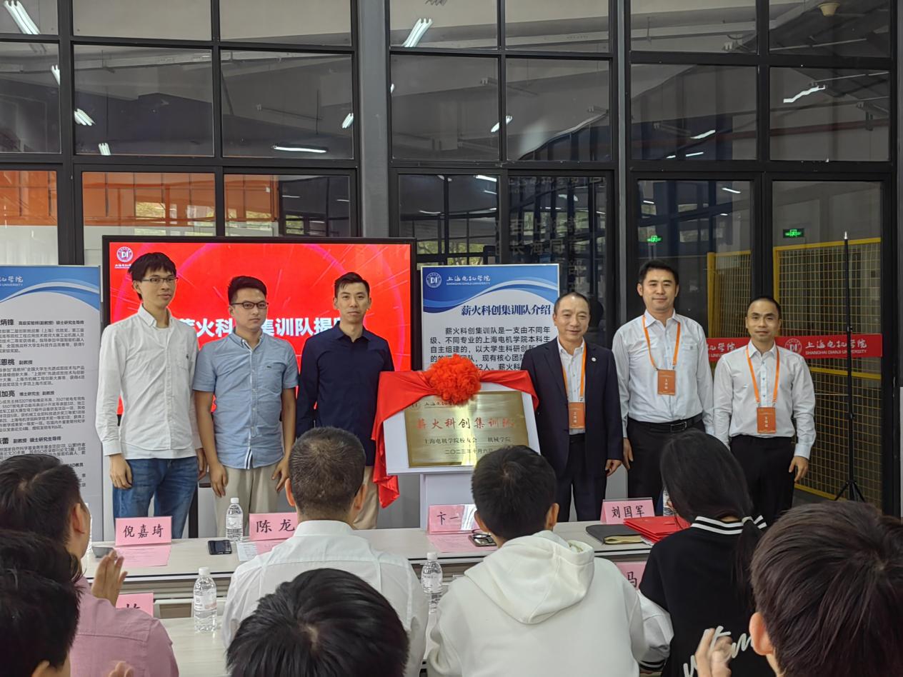在参会人员的见证下,卞一明书记、刘国军副书记与员工陈龙、倪嘉琦,谢海川等为薪火科创集训队揭牌。