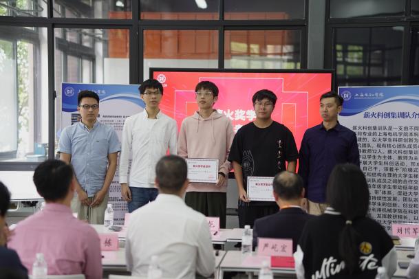 员工陈龙、倪嘉琦、谢海川等为今年薪火奖学金获得者颁奖。