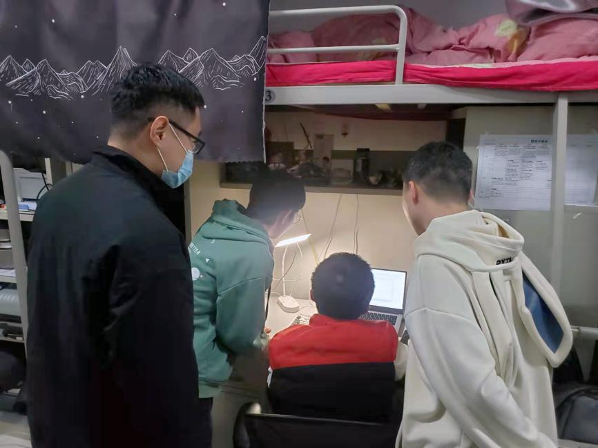 走进员工宿舍、了解准封闭期间同员工活、学习情况。发现毕业班的同学积极准备论文答辩、考研的同学认真复习功课,部分同学在学习高数教学视频;有的同学在做作业、学软件(UG);另外还有同学交流考研规划等。