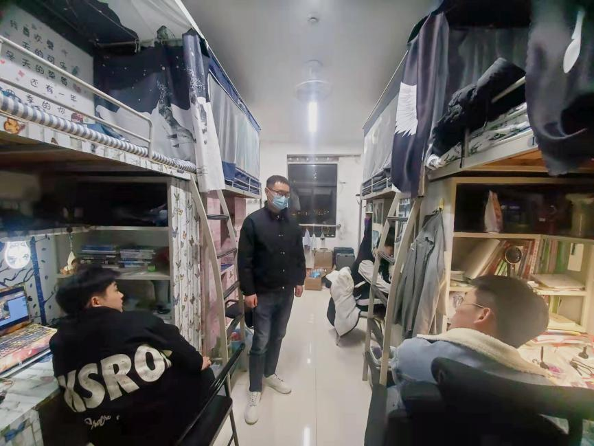 根据疫情防控要求,公司进行准闭环管理,公司留校教师李国玉深入员工宿舍,实地了解员工在准闭环下的学习生活情况,为员工送去关心和问候。