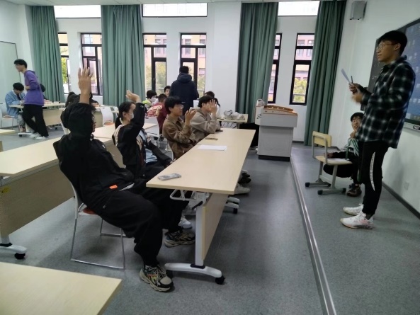 活动现场氛围紧张而热烈,工作人员认真读题,吐字清晰;参赛选手们积极参与,迅速抢答。大家在紧张的比赛氛围下展示出了自己的才华和智慧。答题环节,大家仔细思考,才思犹如绚丽烟火,绽放出青春的光辉;选手们共同竞技,激发彼此的智慧火花,创造出一副热闹非凡的景象。