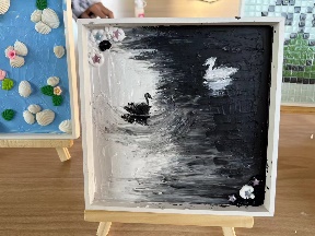 黑白色调的天鹅湖,极具想象力的月球星空,有着海洋味道的贝壳花,可爱的“网红蛙”,月球上的小王子……,栩栩如生的图案彰显了同学们有趣的灵魂。