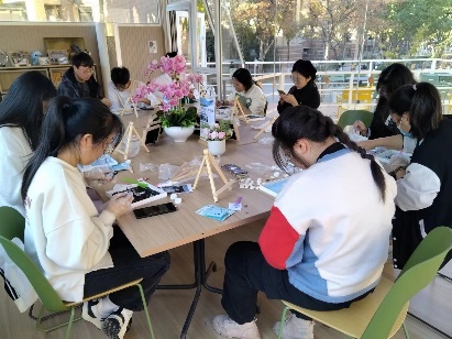 午后暖阳洒在玻璃房里,同学们将色彩一点点融在白色画框中,就如他们的笑声将单调的冬日染上多巴胺的欢乐氛围。大胆的配色,奇妙的构思,精心摆放的饰品,一幅幅“艺术品”即将出炉!