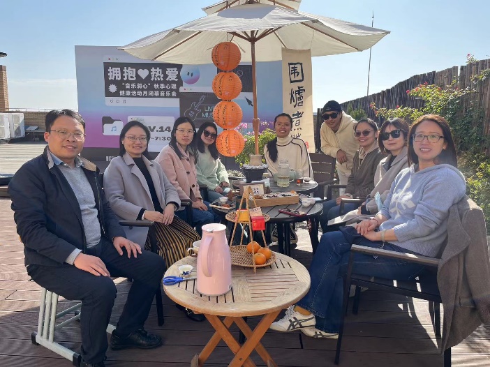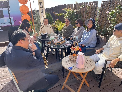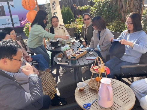 本次活动在正午时分举行,冬日暖阳懒洋洋地照耀在人们身上,参与活动的老师就近来的学习、工作和生活相谈甚欢。又快到了一年年末,大家都在谈着在2023年里的收获和成长。在彼此亲近的距离和亲密的谈话中,大家逐渐放松,慢慢在舒适的氛围里静下心来,节奏慢下来,从压力和繁杂事物中短暂抽身,在温暖和欢乐里畅聊。