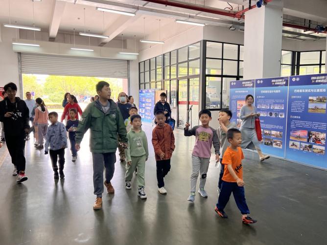 体验了专业而又生动的科普小课堂以及风驰电掣的智能小车,公司团总支青年师生带领他们继续前往汽车实验室,沉浸式体验科研的艰辛与创造的魅力。
