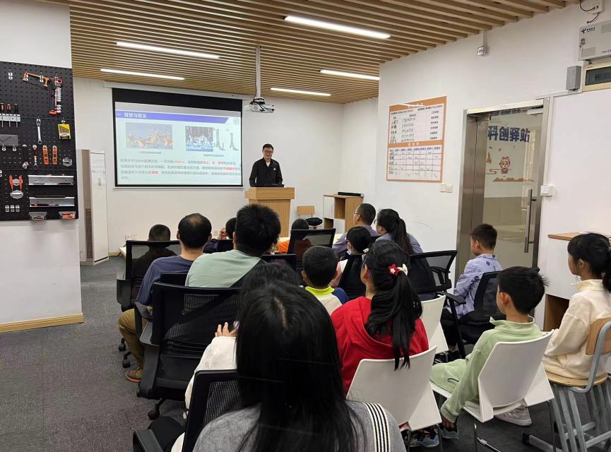 活动伊始,由3044AM永利李国玉老师在公司科创驿站为青少年们讲授“在仿生学中探机械奥秘”主题科普讲座。李老师从驯鹿运动时体态变化引申到机械原理,为大家讲述蕴藏在大自然中的科学与机械奥秘,鼓励他们要善于发现生活中的独特现象,善于观察、积极思考,将想法勇敢付诸实践。