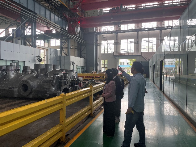 电机厂交流结束后,刘俊书记带队又来到上海电机集团汽轮机厂(以下简称“汽轮机厂”),同汽轮机厂本次联合培养拟派的企业导师有志伟高工和人力资源负责人张栋进行充分交流,就本次与汽轮机厂联合培养的研究方向、具体课题、研究形式等作了深入讨论,双方达成“校企联合、技术落地、以产带教”的一致意见,计划围绕企业当前需求,寻找创新突破点,研究可实际应用于企业的成果,交流结束后,有志伟高工带领参观汽轮机厂各个加工车间,并详细介绍各类产品。