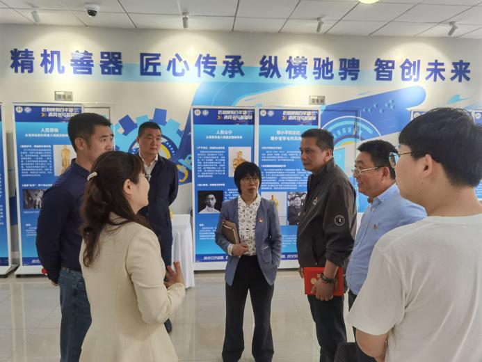 联组学习结束后,参会师生一起参观了机械老员工“匠心铸魂 红色传承”机械装备复刻成果展。